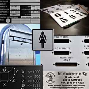 - Lemmikkien nimikilvet: kaulapantoihin ja varusteisiin, sekä mm. hevosten nimikilvet karsinoiden oviin ja varustepaikoille, sekä nimilaput varusteisiin ja loimiin.