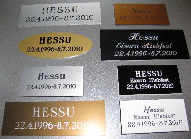 Postilaatikkokilvet, ovi- ja nimikilvet, talon/kiinteistön numerot, hautalaatat.